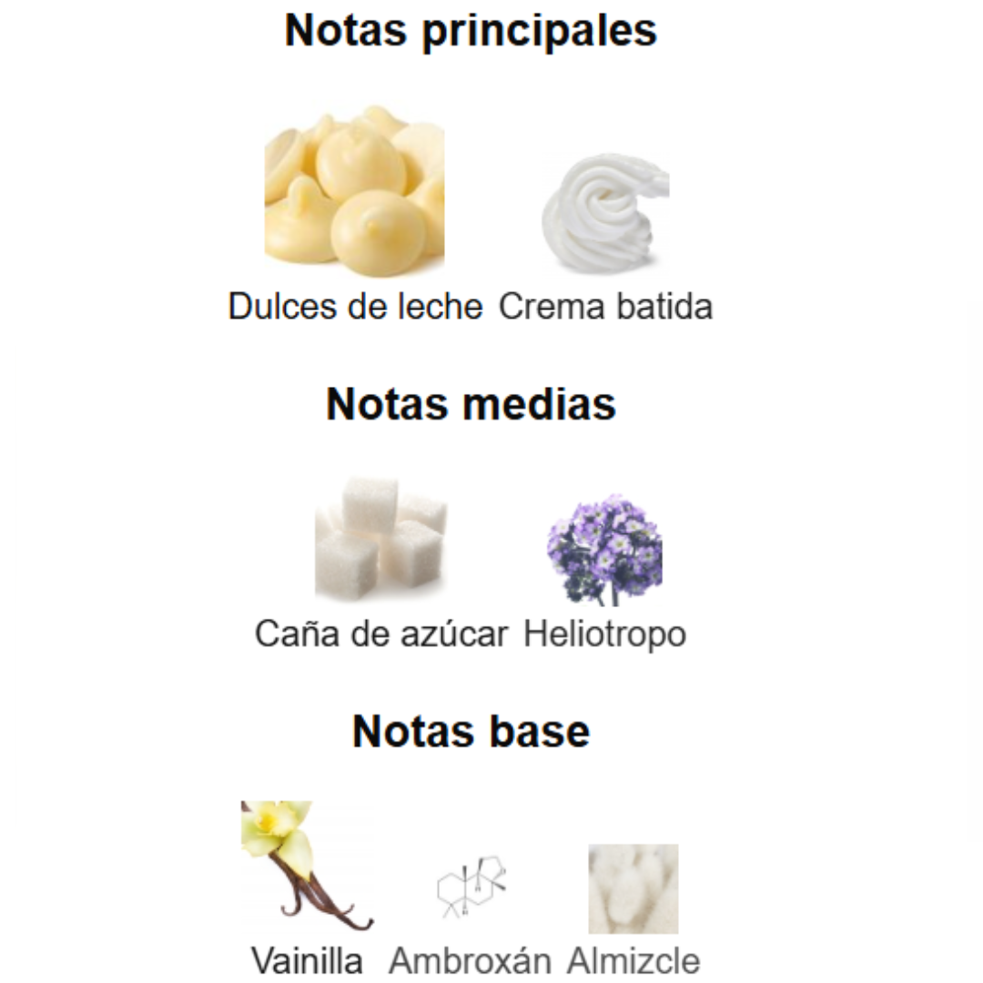 Notas de fondo Ambroxan, vainilla, almizcle.