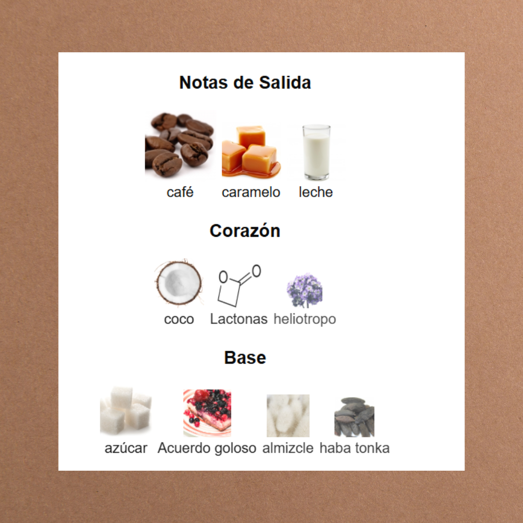 Notas de Salida: Café, dulce de leche, miel, azafrán y bergamota.